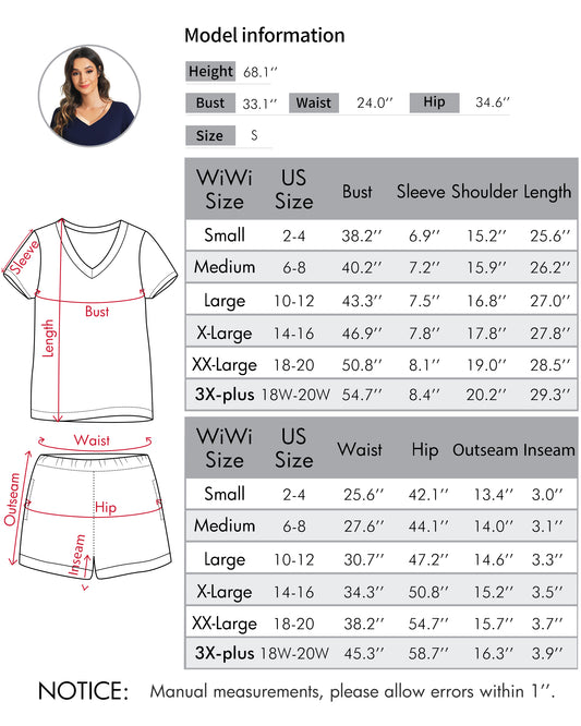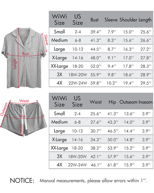 WiWi Bamboo Pajamas Set for Women Short Sets Summer Plus Size