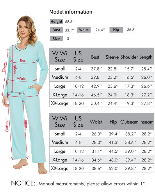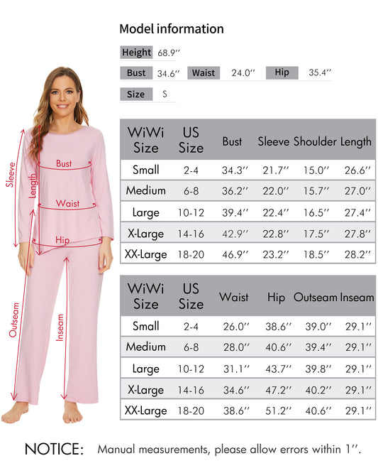 WiWi Bamboo Pajamas Set for Women Long Sleeve Sleepwear