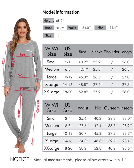 WiWi Bamboo Pajamas Set Long Sleeve Sleepwear Jogger Pants