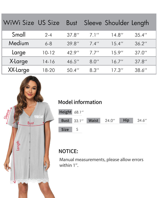 WiWi Bamboo Womens Button Down Nightgowns