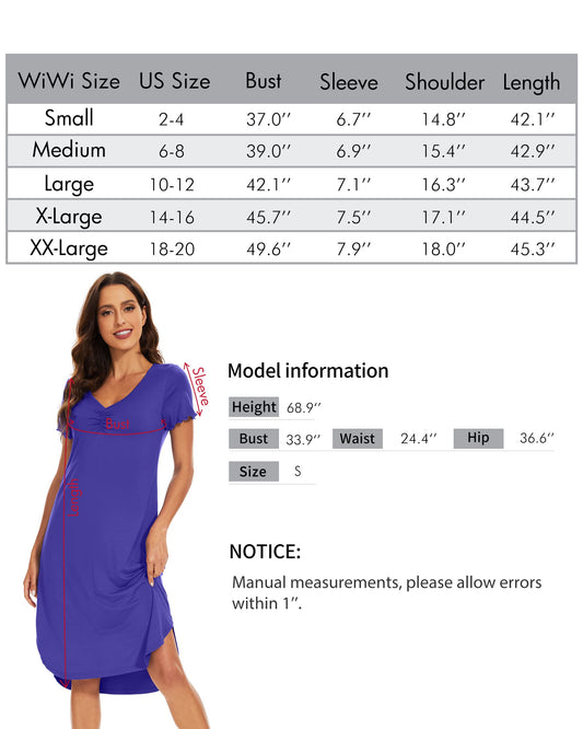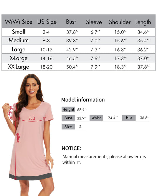 WiWi Bamboo Womens Loose Short Sleeve Nightgown