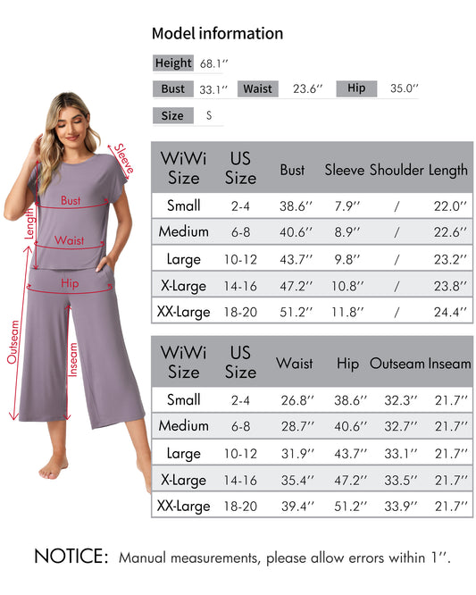 WiWi Bamboo Tops with Capri Pants Sleepwear Pjs