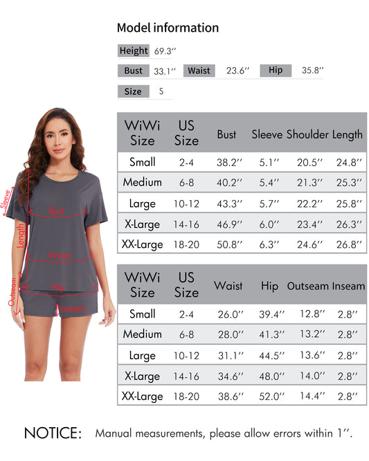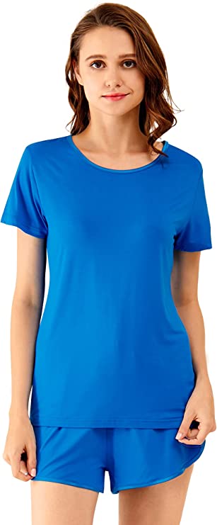 WiWi Bamboo Womens Short Sleeve Top with Shorts Pajamas