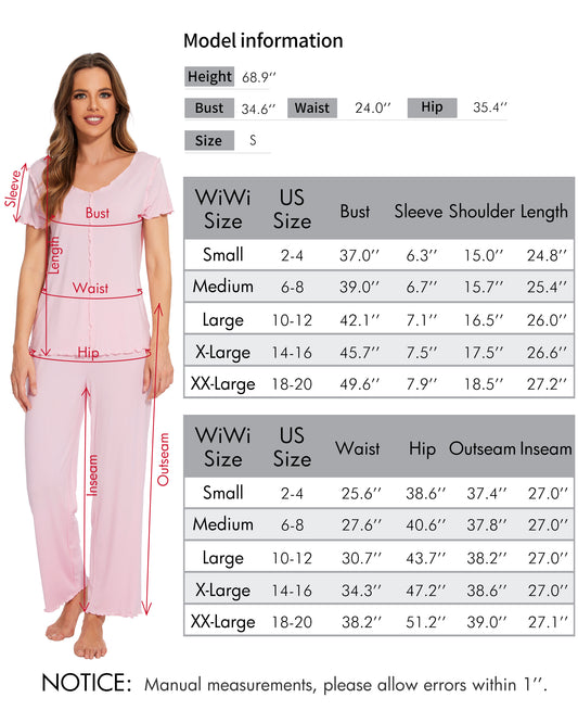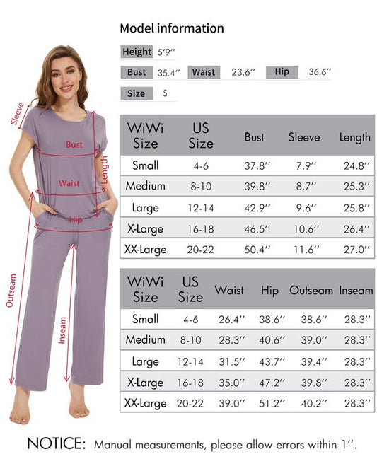 WiWi Women's Soft Short Sleeve Bamboo Pajamas Set