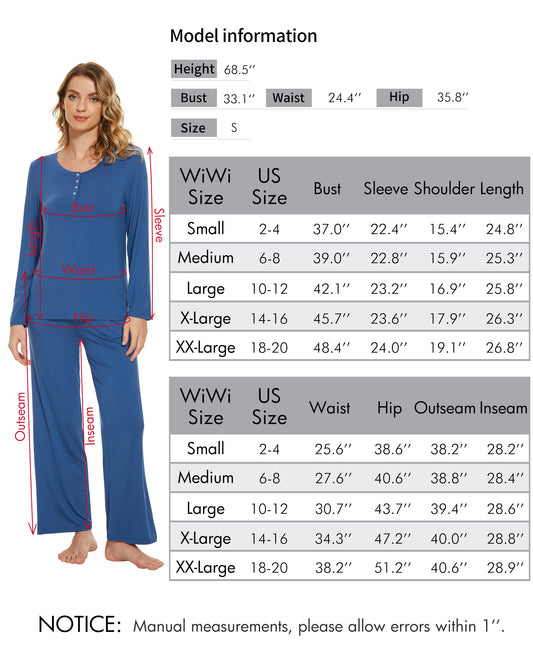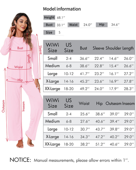 WiWi Womens Bamboo Long Sleeve Sleepwear Pjs