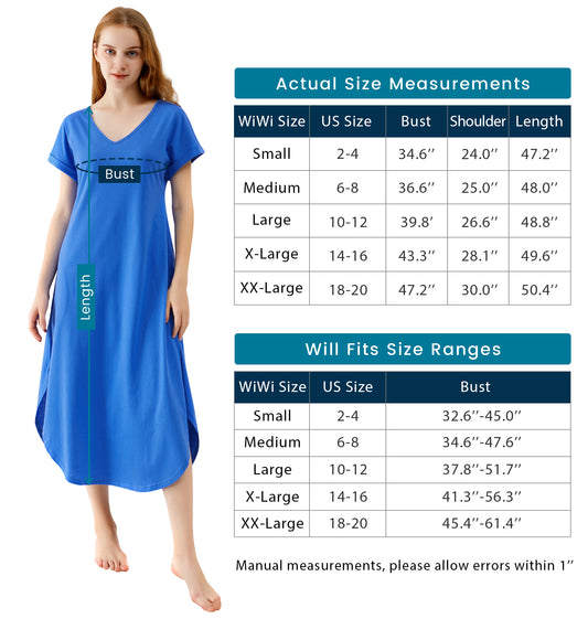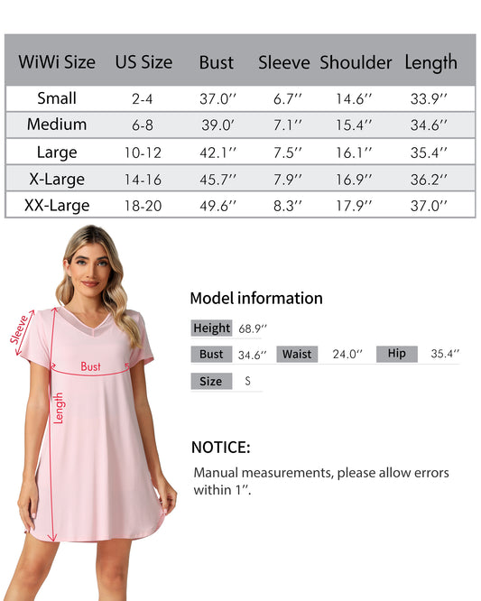 WiWi Womens Nightgowns Short Sleeve Sleepwear Soft V Neck