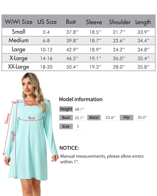 WiWi Long Sleeve Soft Bamboo Nightgowns for Women