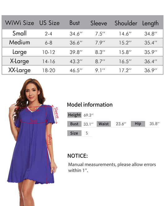 WiWi Nightgowns for Women Short Sleeve Sleepwear