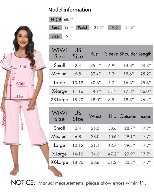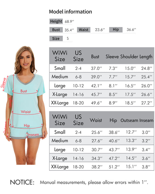 WiWi Bamboo Short Sleeve Pajama Sets for Women