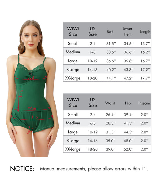 WiWi Women's Bamboo Sexy Lace Cami Pajamas Set