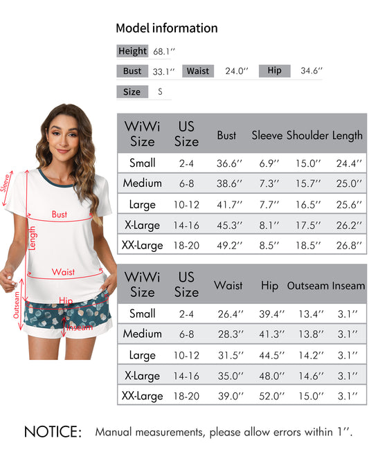 WiWi Bamboo Short Sleeve Pajama Sets for Women