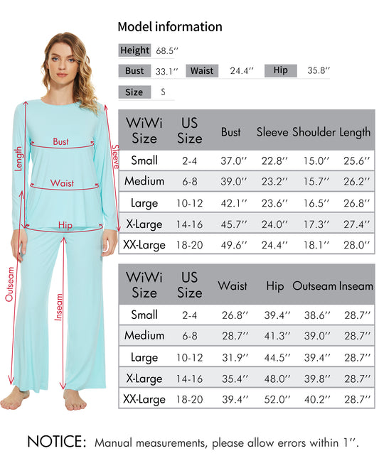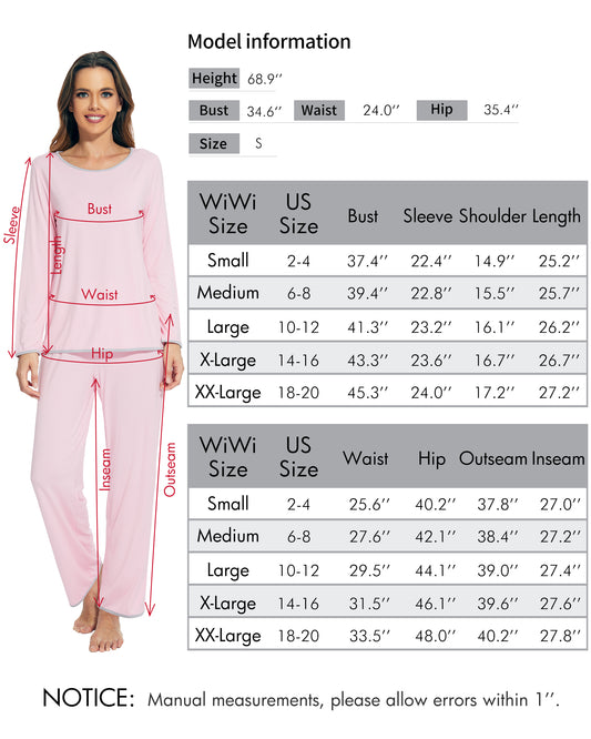 WiWi Soft Long Sleeve Bamboo Pajamas Set for Women
