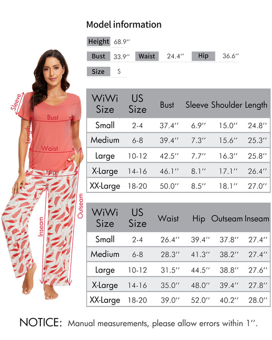 WiWi Short Sleeve with Full Length Pants Pjs for Women