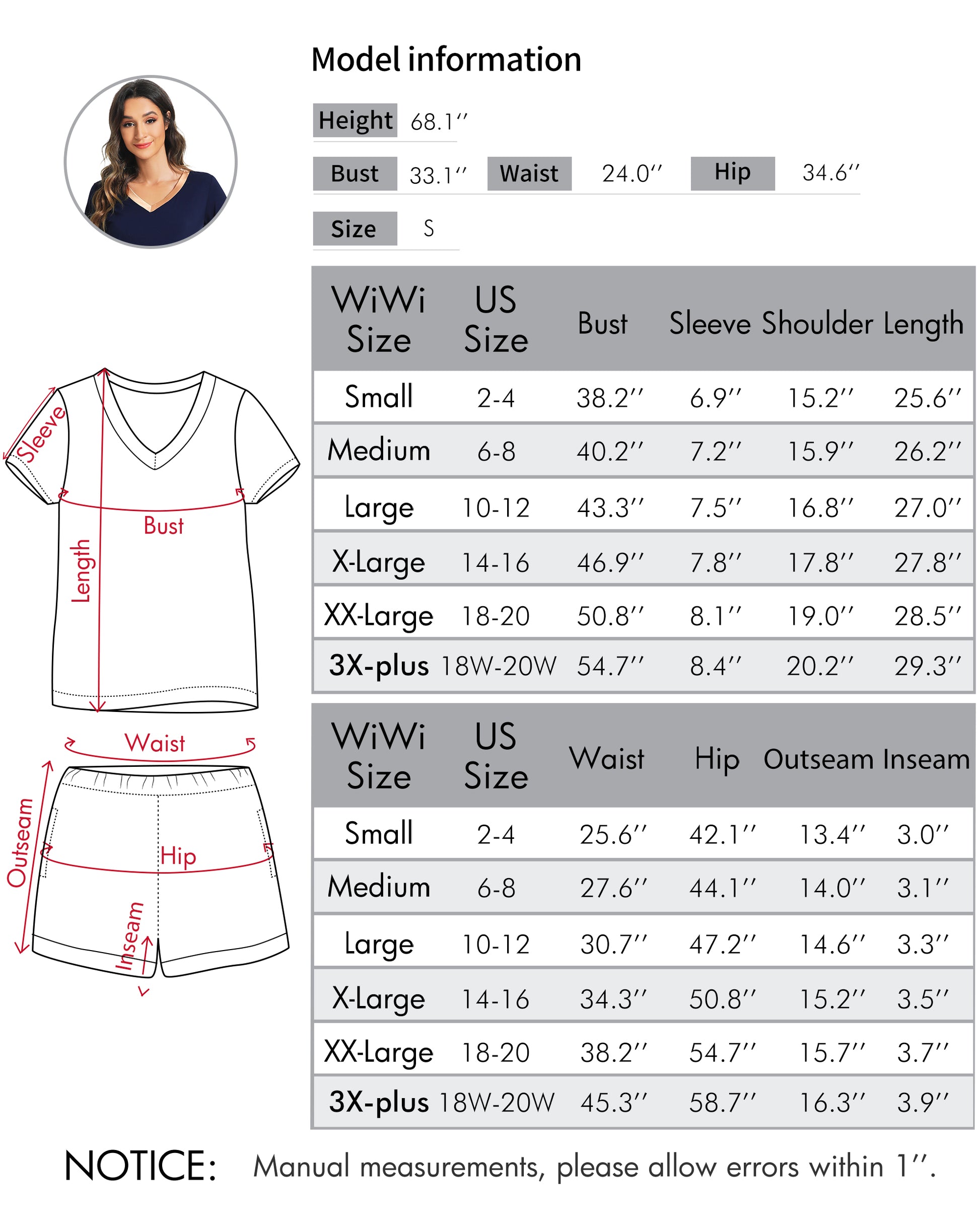 WiWi Bamboo Pajamas Set for Women Short Sets Summer Plus Size
