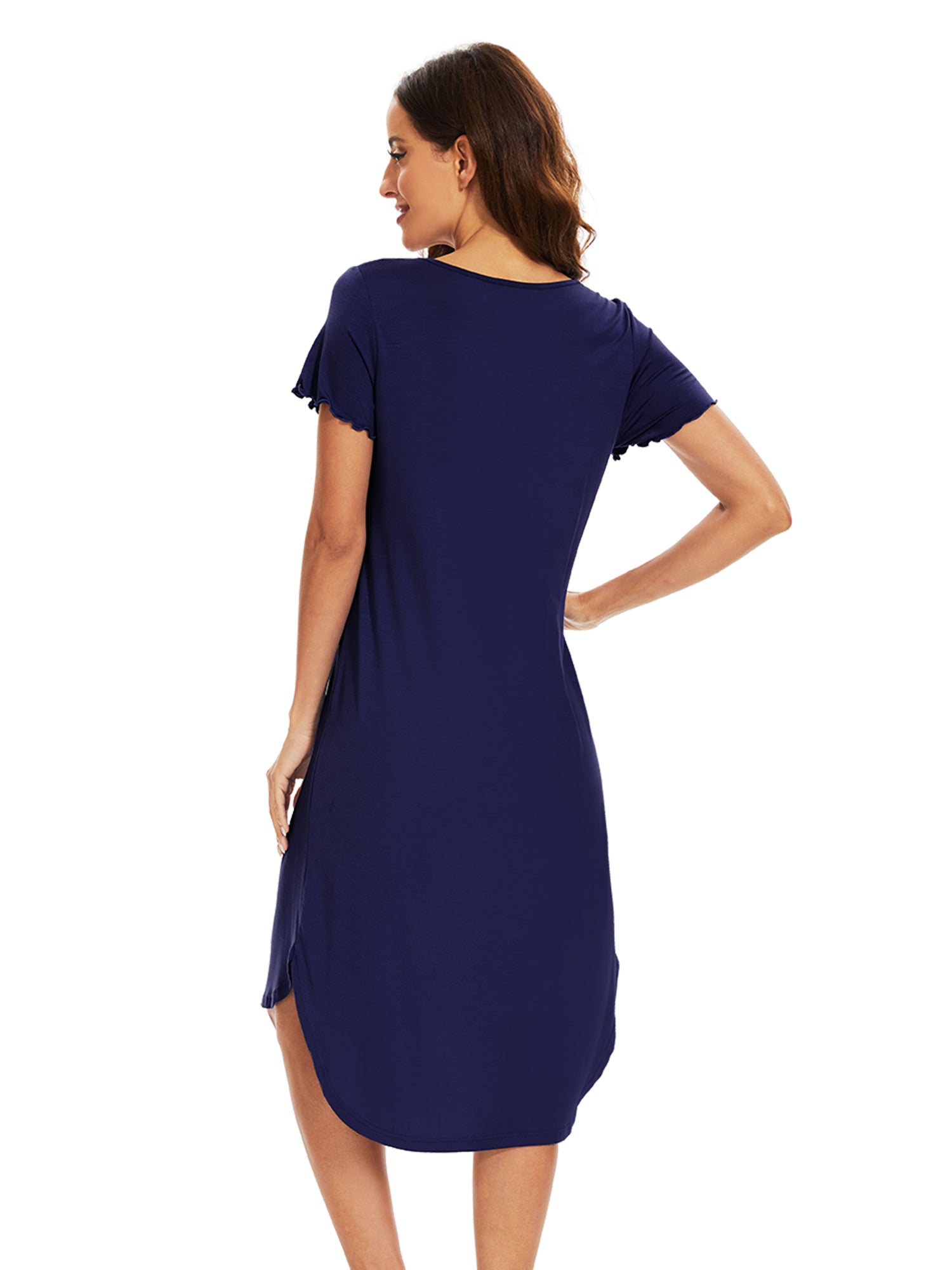 - Details:Classic nightgown is knee length, v-neck and short sleeve with ruffled seams. The asymmetrical hem design which can flatter your body shape, make you more sexy and attractive.